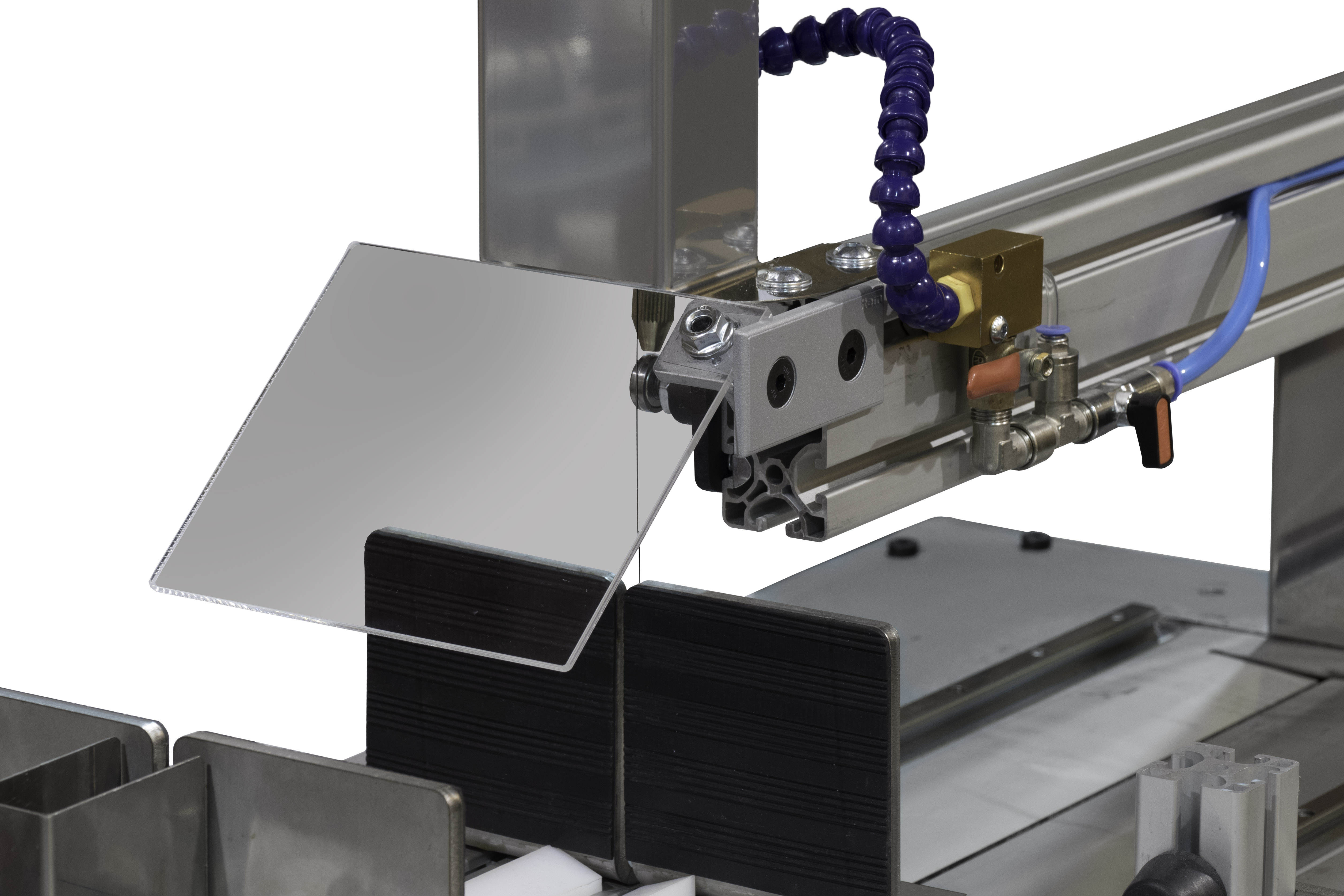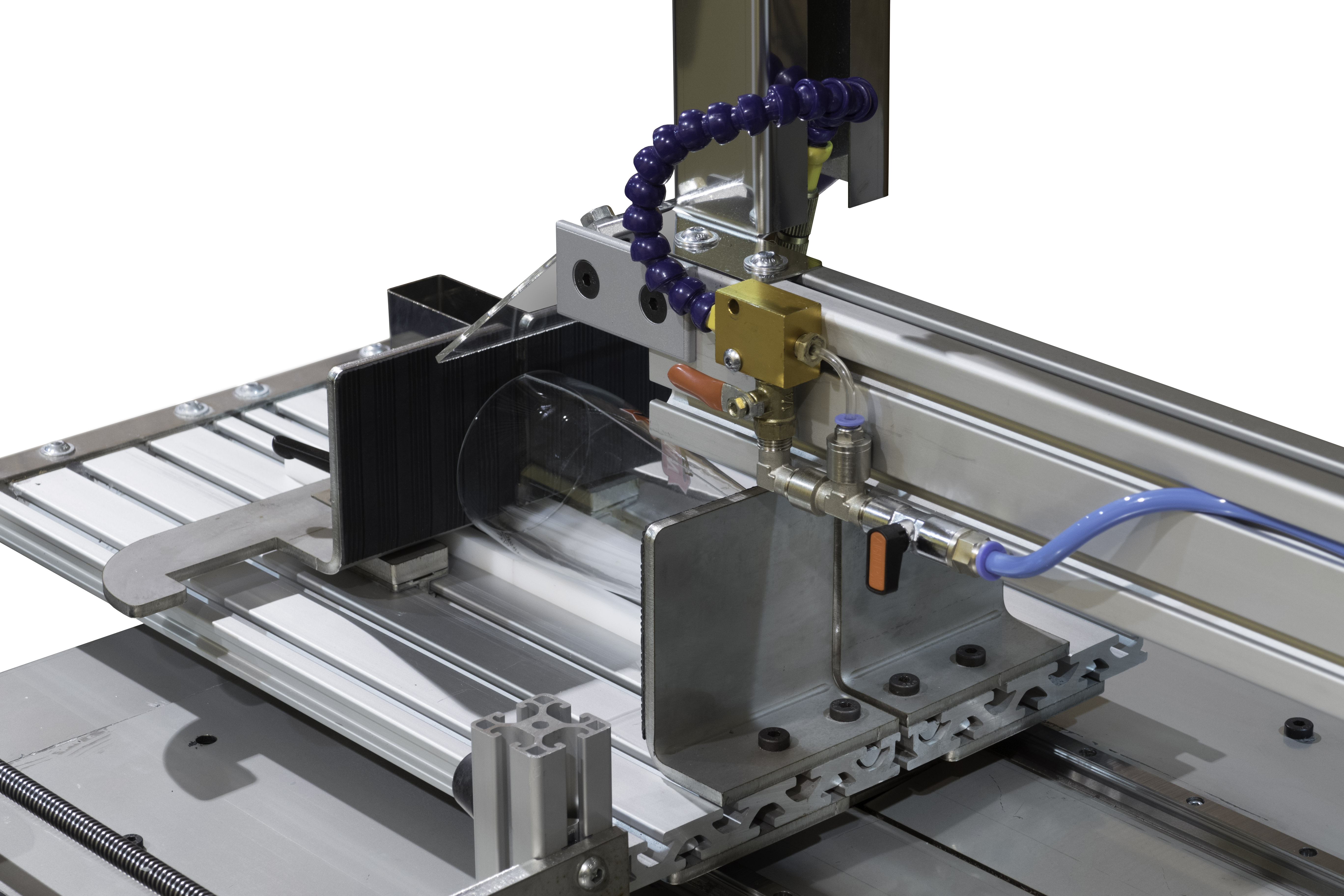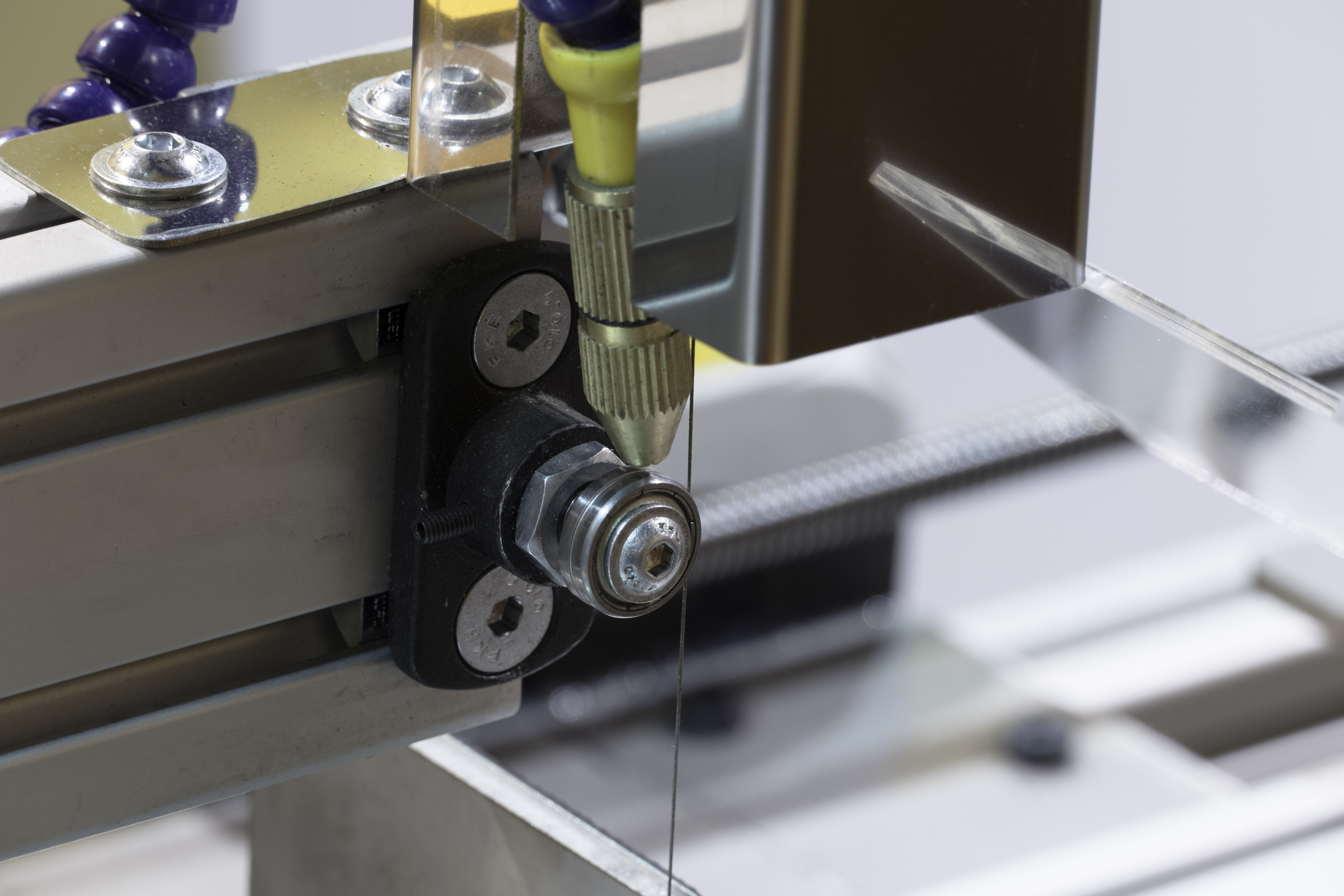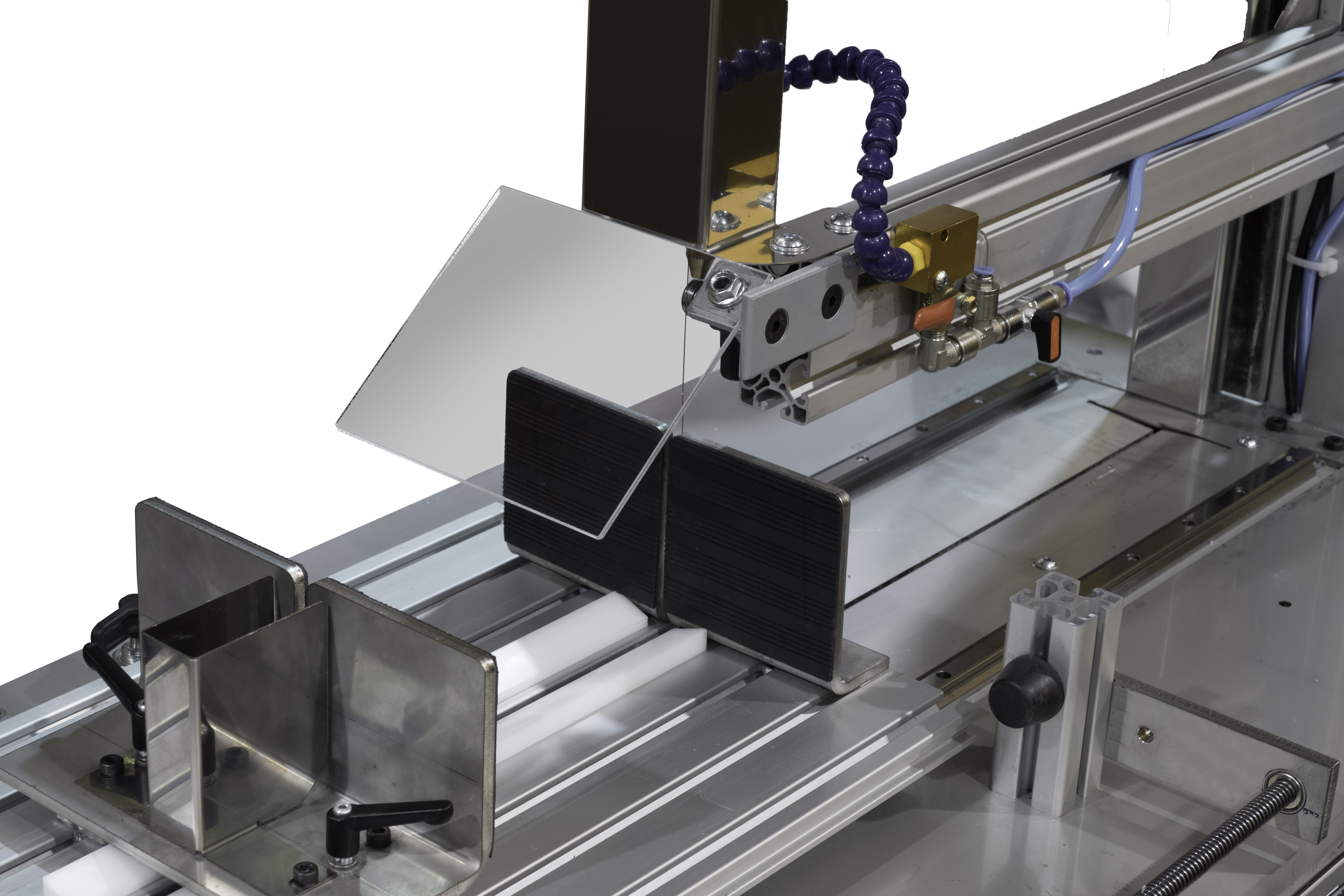 Piła przeznaczona do cięcia szkła, ceramiki, metalu, tworzyw sztucznych oraz pochodnych. Zapewnia możliwość precyzyjnego cięcia, docinania, plasterkowania i rozcinania. Łagodny rozruch. Stabilna, przenośna i trwała konstrukcja. Łożyskowany stół do pewnego prowadzenia materiału. Zintegrowane uniwersalne mocowania do cięć specjalnych (poprzecznych). Mocowania samocentrujące obrabiany materiał. Wysokość cięcia do 300 mm. Długość cięcia (materiału) do 500 mm. Innowacyjna technologia przecinania bezkońcowym drutem z nasypem diamentowym o średnicy 0.6 mm.