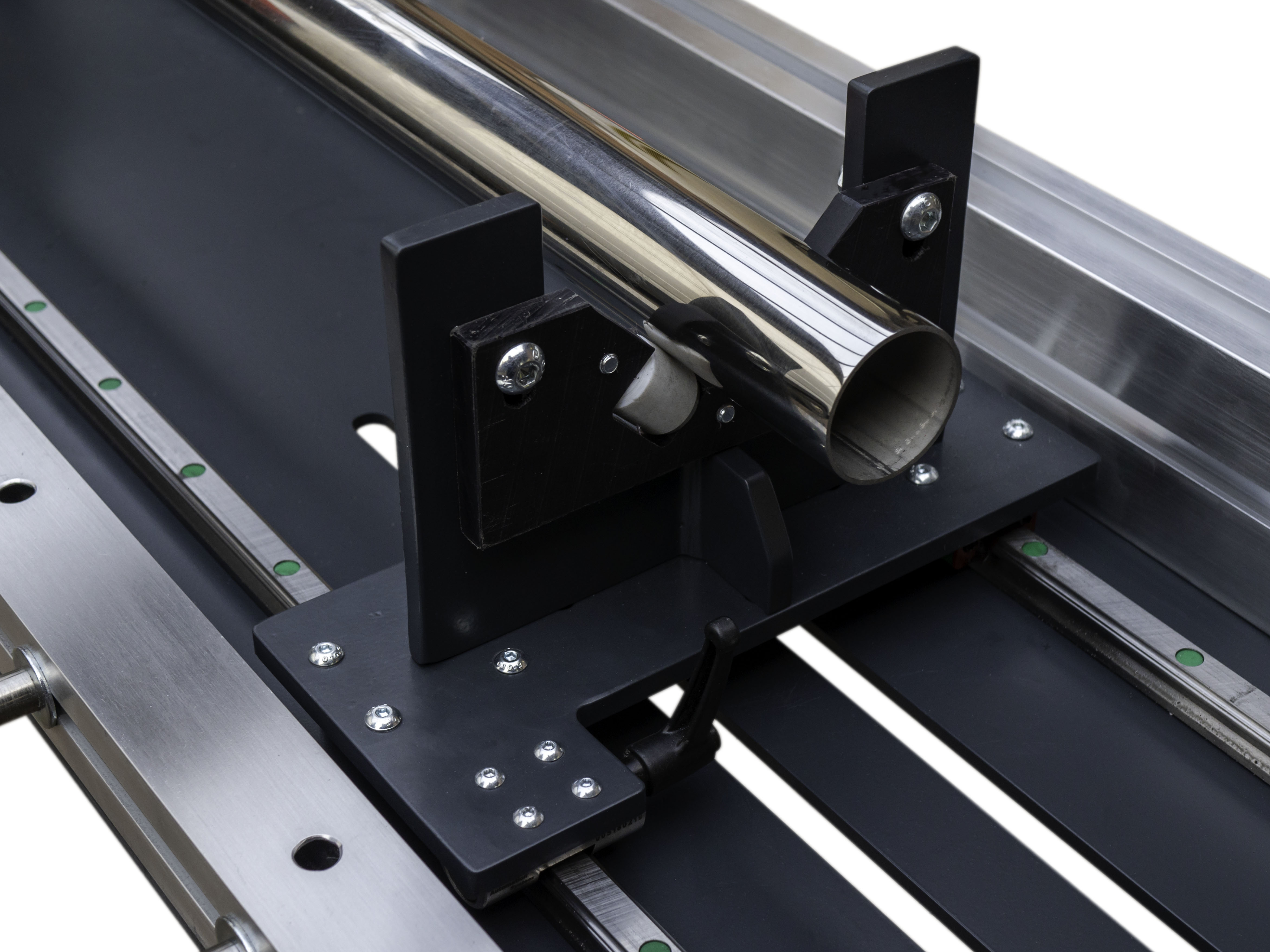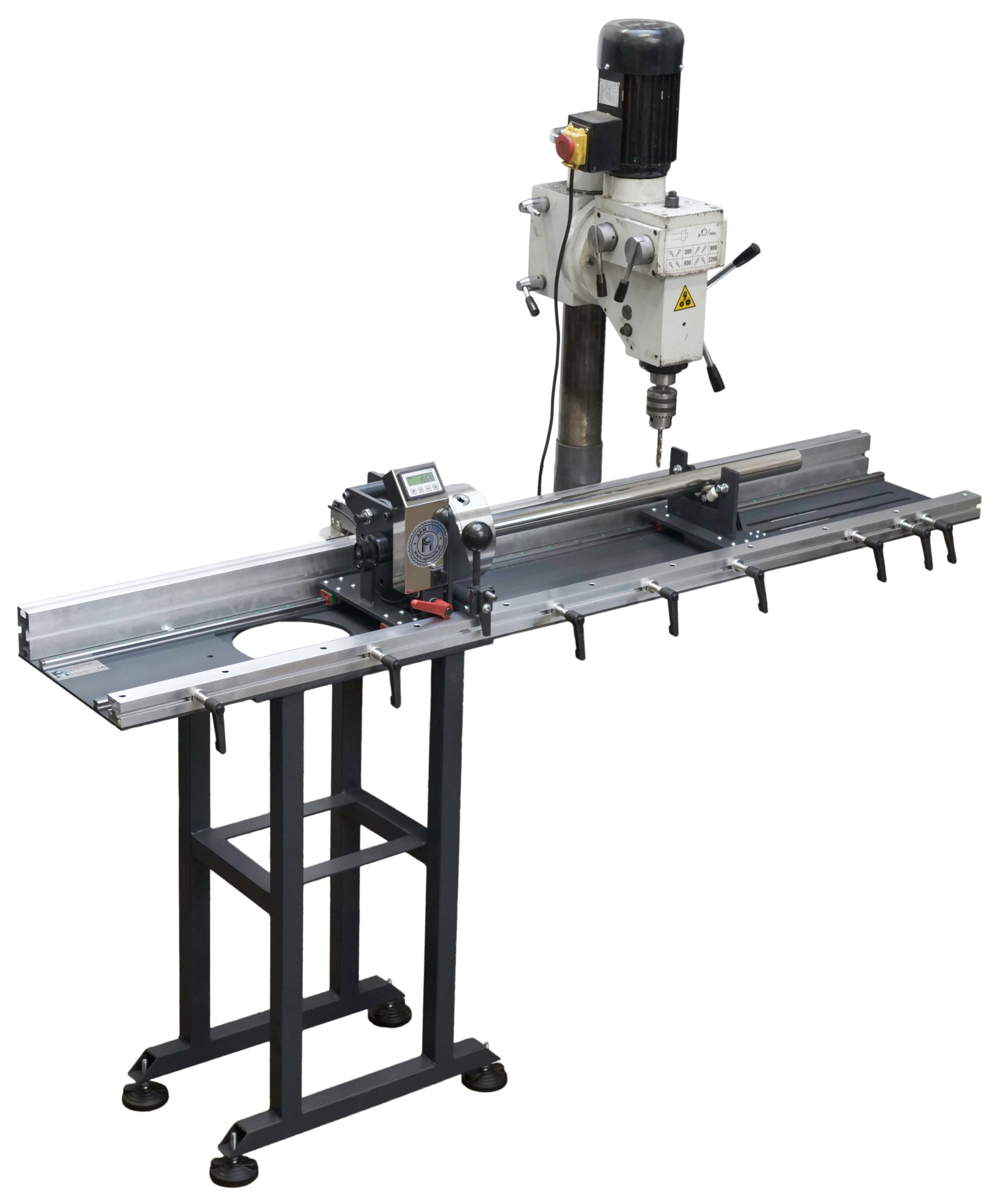 Przyrząd do wiertarki słupowej / kolumnowej / stołowej. Mocowany do stołu teowego. Regulowany w osi Y (centrowanie względem wrzeciona). Umożliwia precyzyjne wiercenie / gwintowanie / frezowanie (zależnie od wykorzystanego urządzenia bazowego) w osi X (po długości) oraz A (obrót wokół osi X) przedmiotu obrabianego. Uchwyt do mocowania rur okrągłych oraz kwadratowych, w opcji również rury prostokątne. Elektroniczny odczyt położenia (w osi X). Regulowane zapadki ustalające pozycje. Swobodny obrót detalu w osi A (wokół osi X) z możliwością zablokowania dowolnego kąta. Otwory bazujące na kątach 45º, 90º i 180º. Idealny przy produkcji balustrad / płotów / bram.